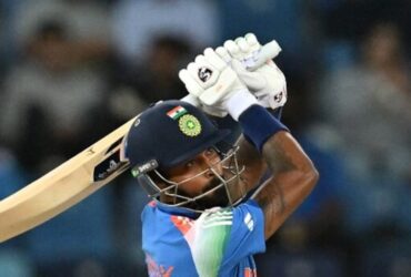 Hardik Pandya, after lifting the ICC champions trophy title, ...